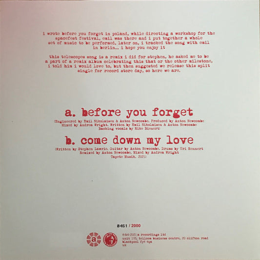 Brian Jonestown Massacre* Vs The Telescopes - Before You Forget / Come Down My Love (10") (Near Mint (NM or M-))